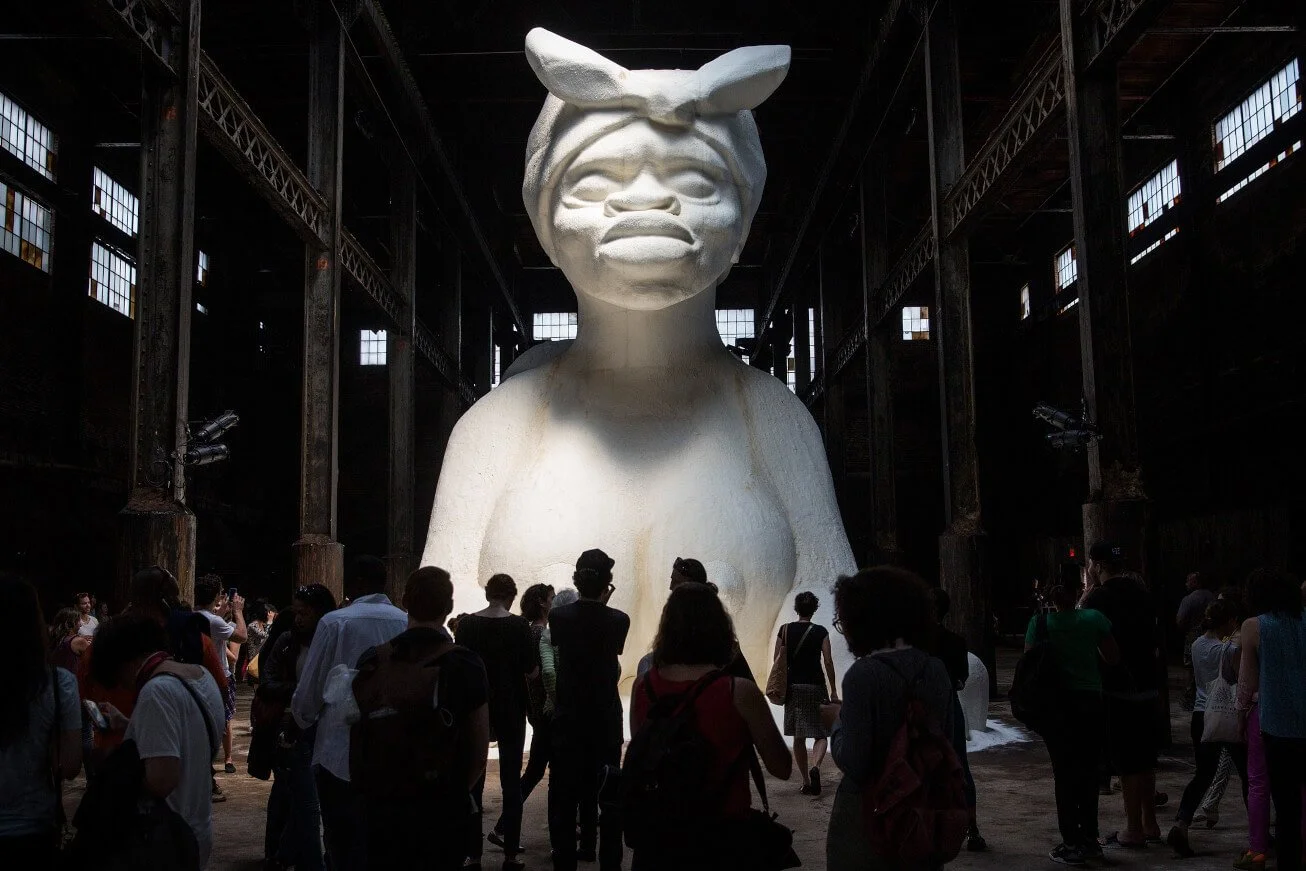 Another powerful exchange can be found in the large-scale, immersive conversations between Kara Walker and Olafur Eliasson. Though they didn’t co-paint or co-sculpt in a traditional sense, their work grew in parallel and in conversation through a shared artistic language of space, scale, and experience. Walker’s monumental installation A Subtlety, created with the public arts organization Creative Time (see: What Is Creative Time?), brought historical narrative into the realm of architectural immersion. When Walker’s excavation of Black history meets Eliasson’s spatial philosophies of light and perception, the room itself becomes a story.